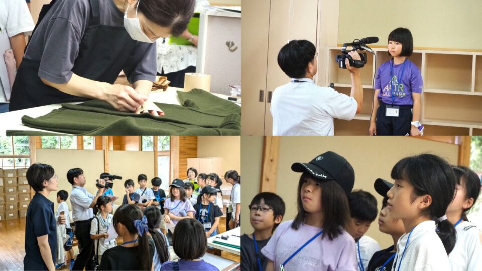 この「リンキング」の作業は子どもたちにも新鮮な体験だったようで、作業の後に職人さんに個別で質問する子どもたちの姿も見られました。また、UTOでの工場見学では地元ケーブルテレビや新聞社の取材も入り、子どもたちはカメラマンさんや記者さんから取材を受ける体験も。それも含めて、忘れられない工場見学になったことでしょう。
