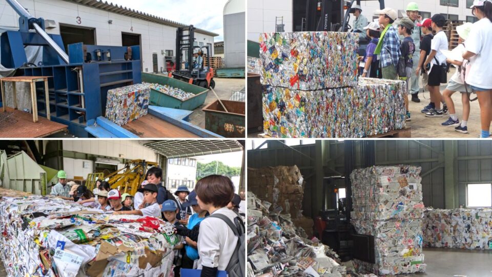 最後に訪れたのは、マルサのグループ会社「株式会社エコ」の工場です。こちらでは、新聞・雑誌・段ボールなどの紙類やアルミ缶などを回収・分別し、リサイクル資源として製紙工場やアルミ缶のリサイクル工場へ出荷しているそう。