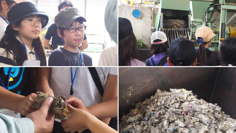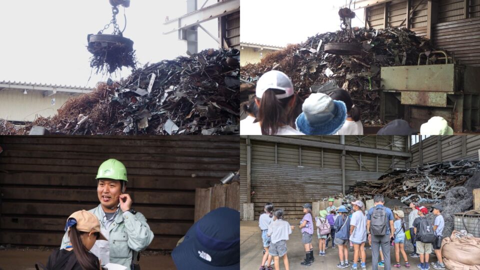 その説明に子どもたちも納得した様子。ゴミの分別は「リサイクルの第1歩」ともいいますが、今回の見学を通して、ゴミだと思っていたさまざまな廃棄物が細かく分類され、リサイクルしやすいように加工(解体・切断・圧縮・破砕など)することで資源として再利用されやすくなり、私たちの暮らしに生かされていることを知りました。子どもたちもそのことを身をもって実感し、改めてリサイクルの大切さを感じた貴重な時間となったのではないでしょうか。
