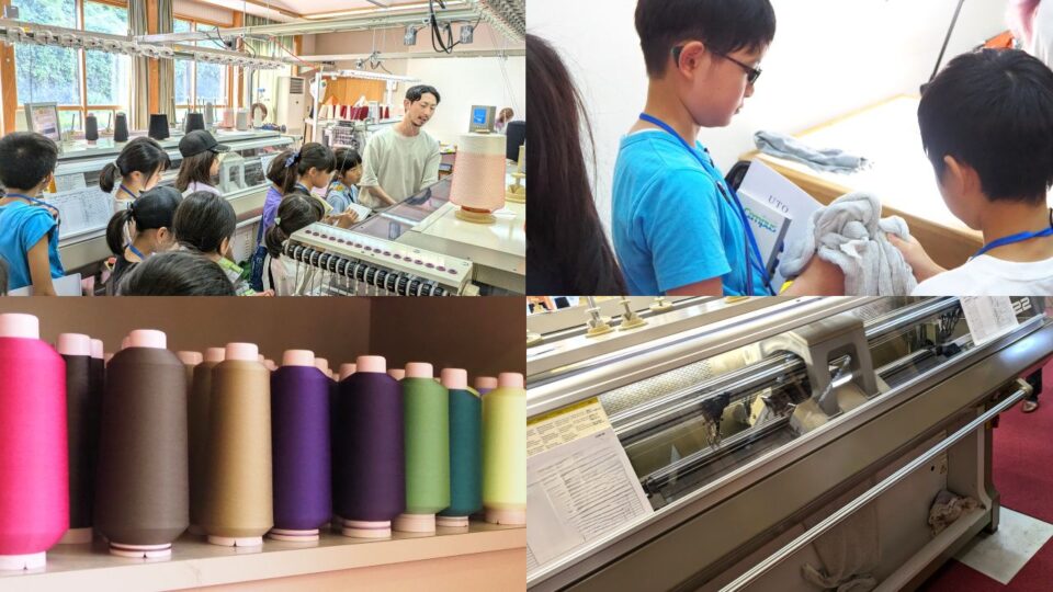 おまけにUTOでは世界最高峰のカシミヤを使用しており、軽く、やわらかで、肌あたりの心地よさも人気の理由です。その心地よさを実現するためには、生地と生地を上手につなぎ合わせるだけでなく、そのつなぎめが肌に触れてもなめらかで心地よいと感じる仕立てにする技術が必要だそうで、熟練した職人さんの手ほどきを受けながら、細やかな生地の編み目をひとつもこぼすことなくつなぎ合わせようとする子どもたちの目は真剣そのものでした。