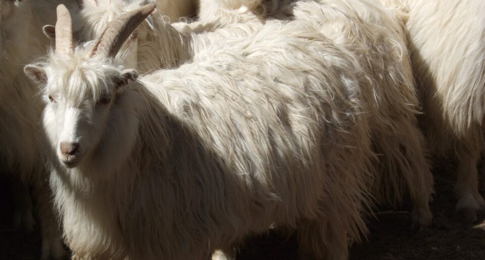工場見学の最初に説明があったのが、カシミヤニットの原料について。UTOが使用するカシミヤは、冬は-30℃以下、夏は30℃を超える中央アジアの厳しい自然環境で暮らす山羊のうぶ毛(カシミヤ)のなかでも、軽くてやわらかい世界最高峰の品質を誇るカシミヤを使用しているそう。
