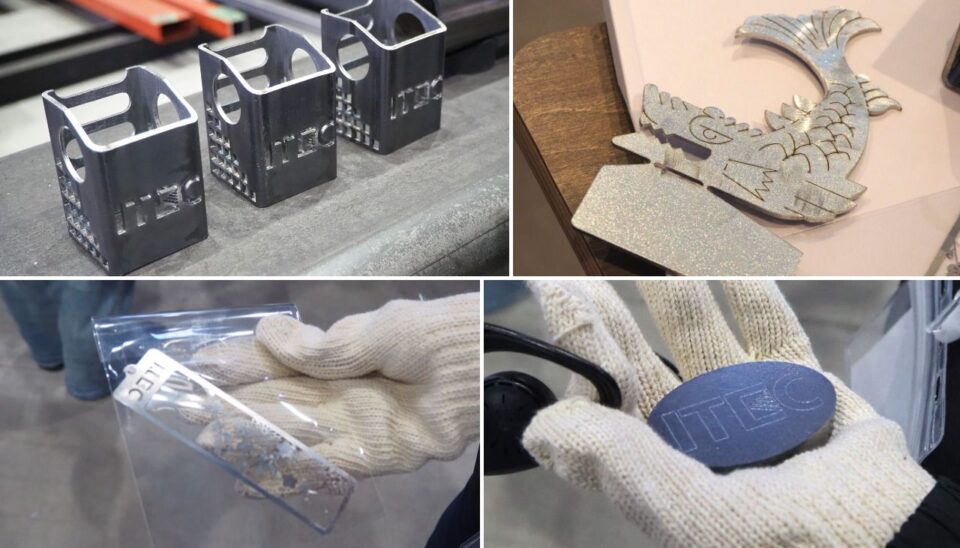 最初に見学した3Dレーザー加工機は自動化されたラインに鋼材を流せば、自動で複雑な形状も自在に加工してくれるという最新の機械です。こちらも3D CADでつくったデータをもとに製品を加工しており、実際にどのような加工ができるのか、サンプルも見せていただきました。